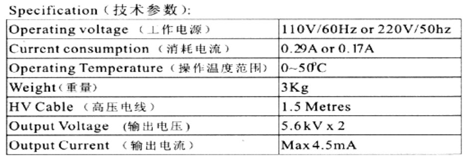 靜電消除器技術參數(shù):