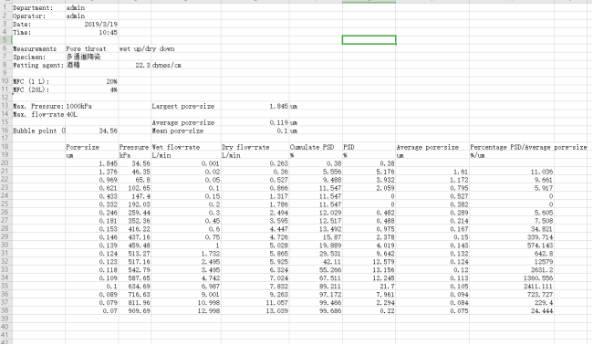 孔徑測試結(jié)果顯示圖表